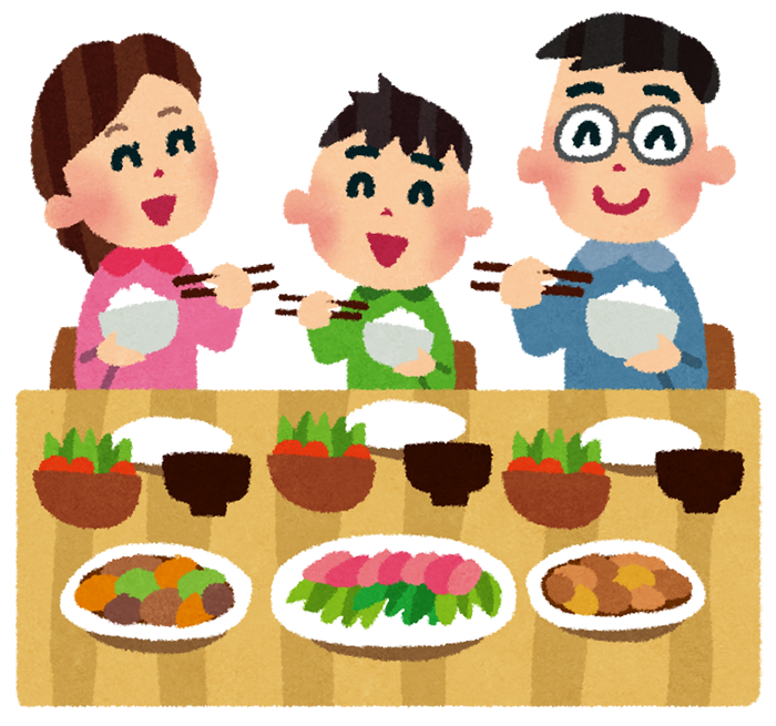 食事中お母さんは3人の子供の食事の世話をしながら食べていたけど、お父さんは自分の食事しかしていなかった